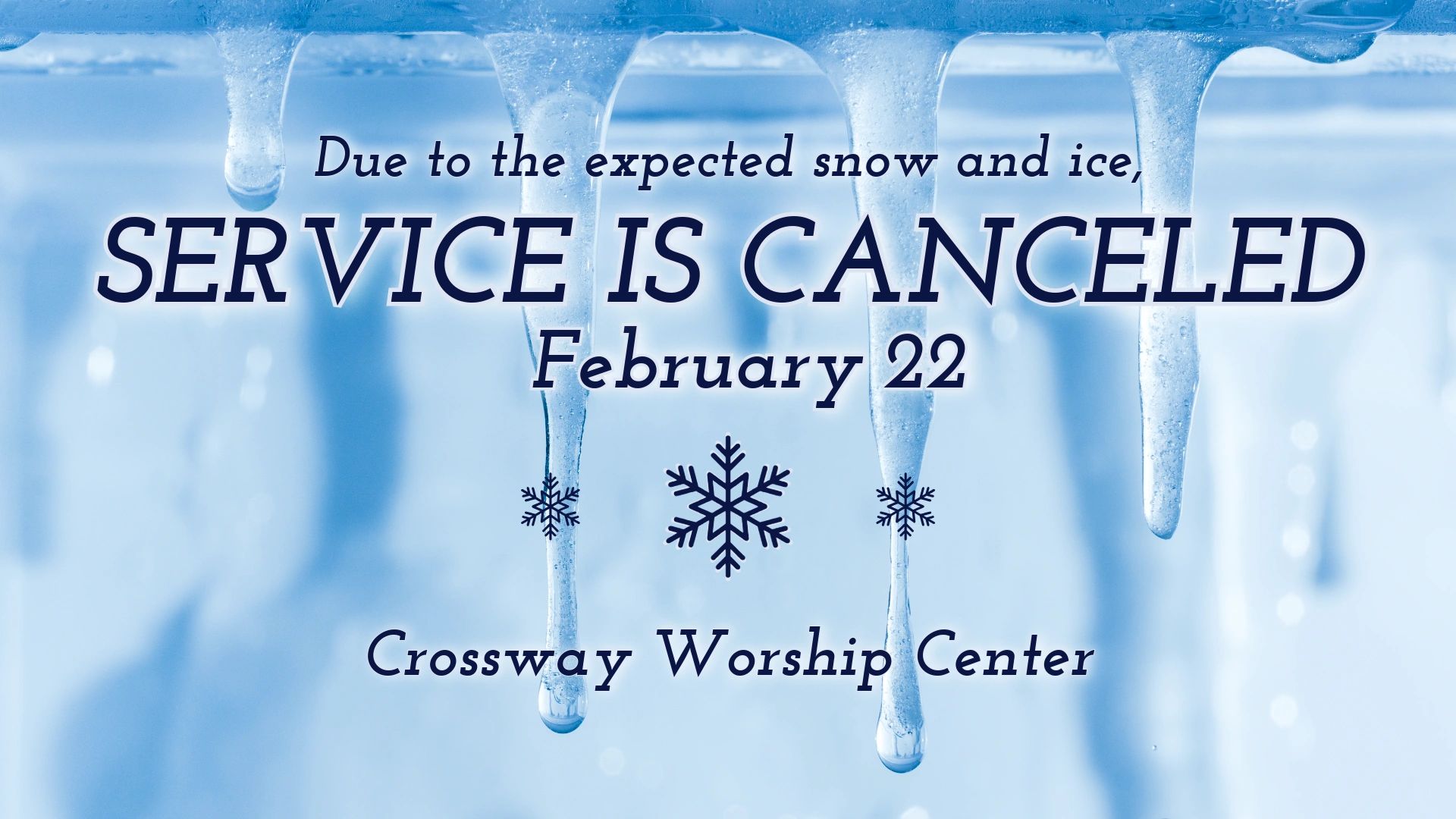 We are sorry to once again cancel our Sunday morning worship service due to winter storm weather! We pray you stay warm and safe!